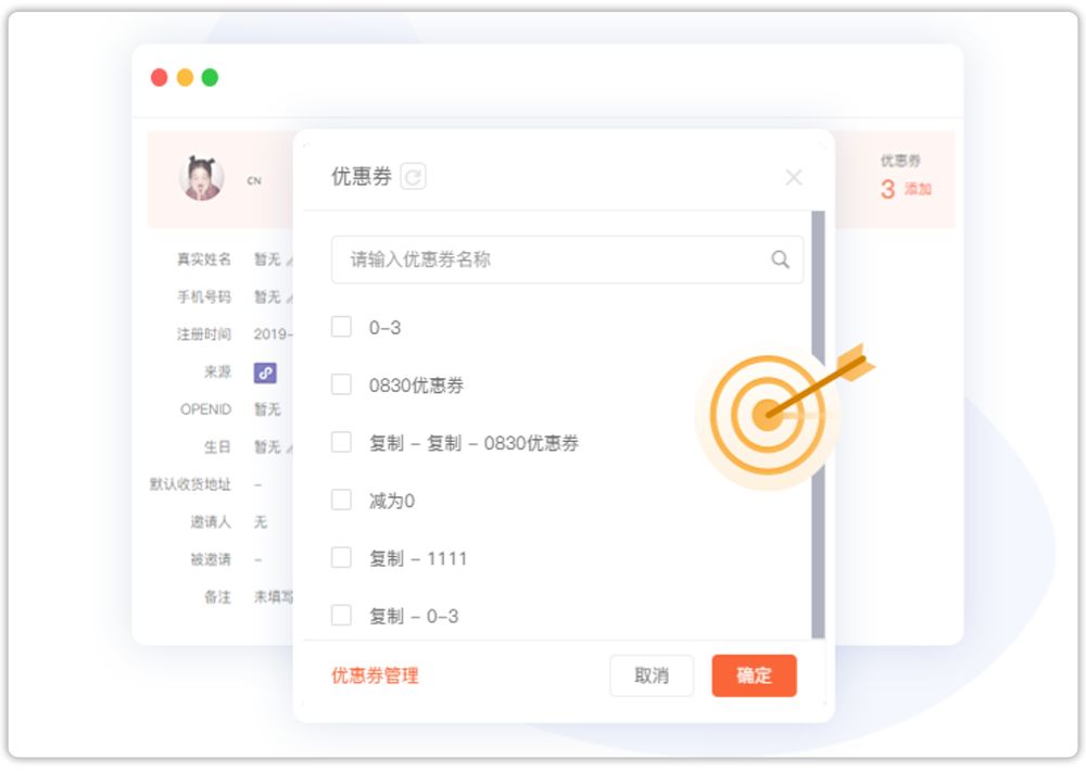 可随时了解会员详情,定向发放优惠卷,有效提升成交率。