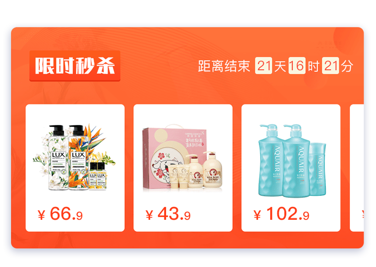新增限时秒杀组件,多商品滑动展示。