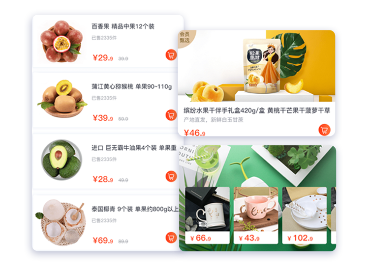 包含单个商品展示、多商品轮滑展示、商品列表展示,