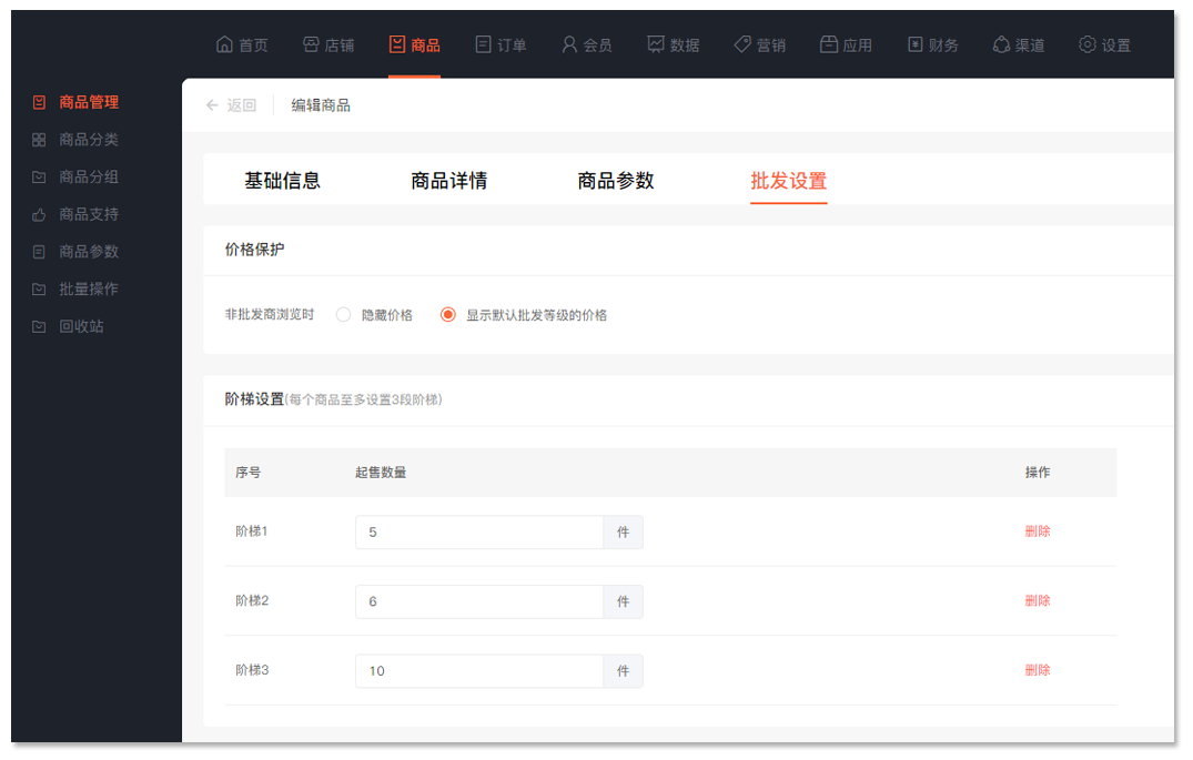 · 可设置申请批发商的门槛和升级条件,如:购买指定商品、累计消费金额、会员等级等。