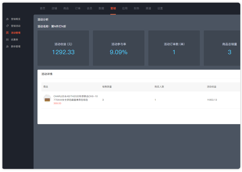 随时查看活动相关数据,查看订单情况,专业的数据统计,为营销活动保驾护航。