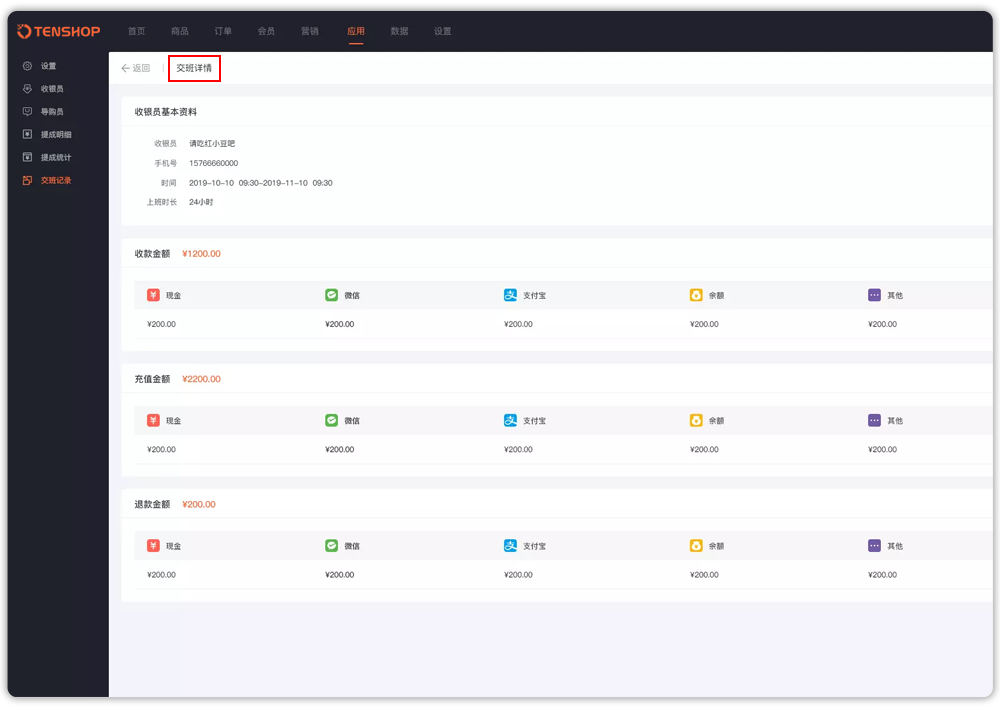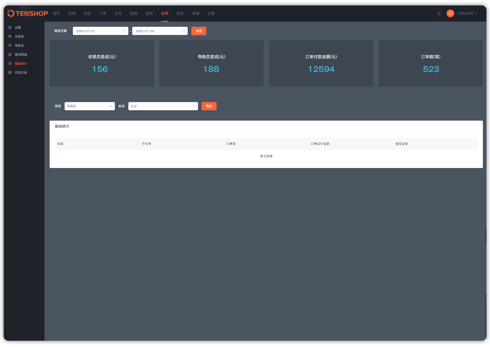 收银台支持多门店,需单独设置门店导购、收银员及提成。