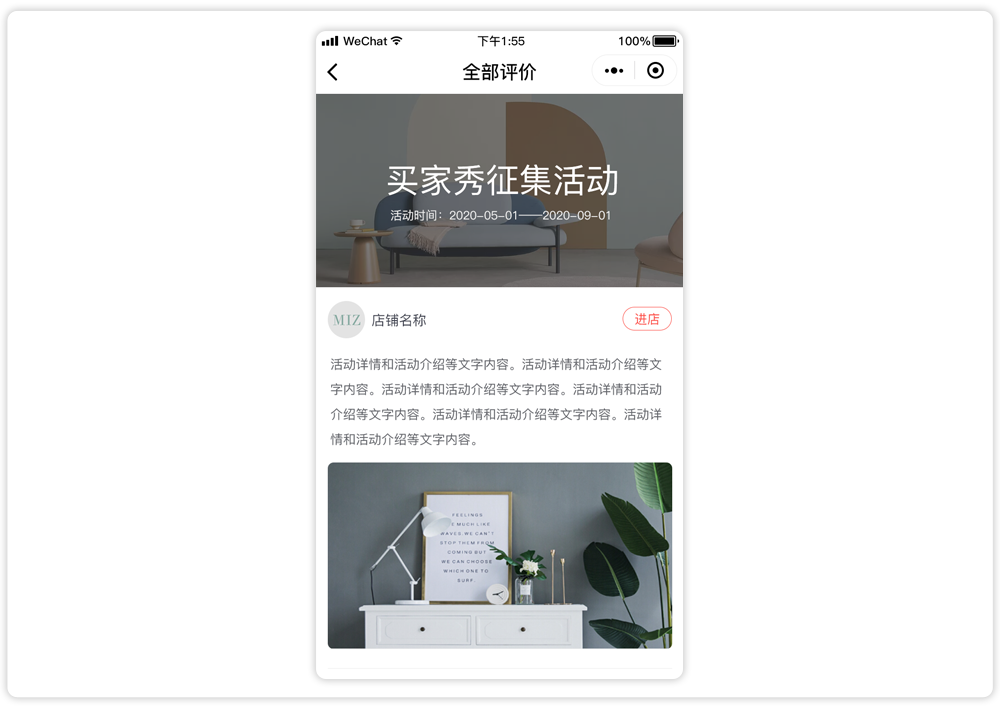 买家在活动期间上传满足活动要求的评论,商家将评论设为精选后,买家可以获得相应的奖励(优惠券/积分/余额)。