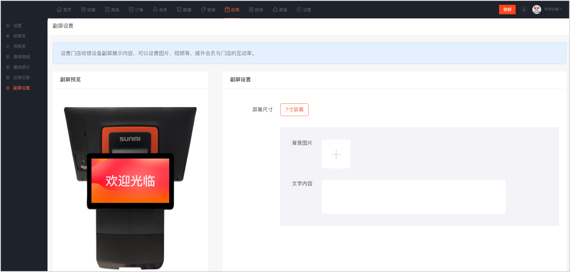 【10】全面对接商米D2收银机,双屏显示,可在业务端设置副屏显示内容。