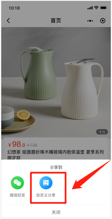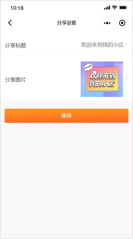 代理小店小程序可以设置分享气泡中的标题文字和图片信息。