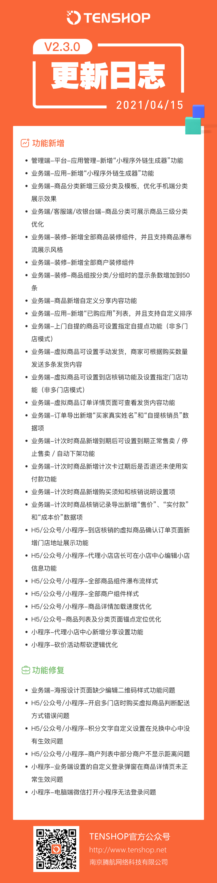 TENSHOP V2.3.0全新发布!商品分类大升级,十余项更新优化一睹为快!