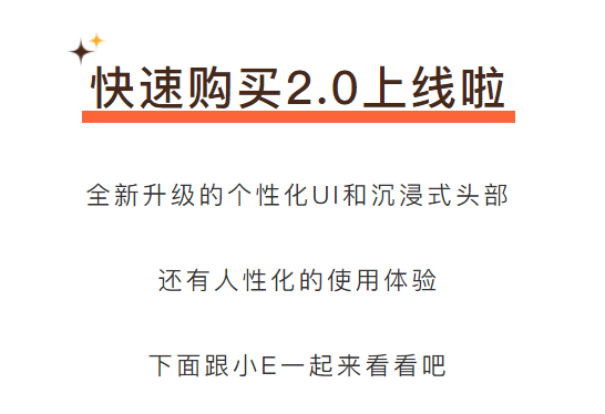 快速购买2.0来咯!界面UI和使用体验duang duang大升级!