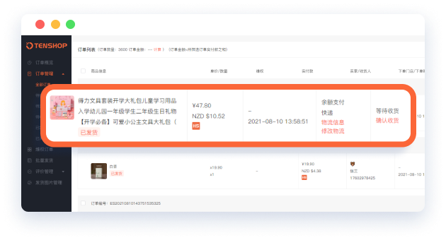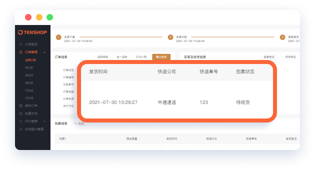 为了给用户提供全渠道订单解决方案,TENSHOP已完成与聚水潭ERP的对接。