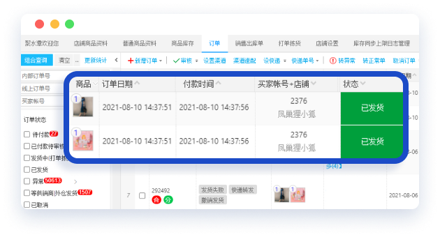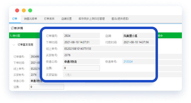 聚水潭ERP对接以订单处理为主线,进存销为核心,实现了商品同步、库存同步、订单同步、发货状态同步和物流信息同步。