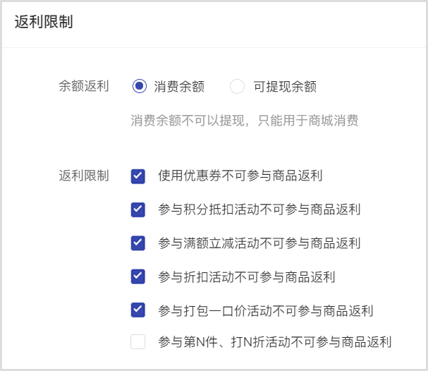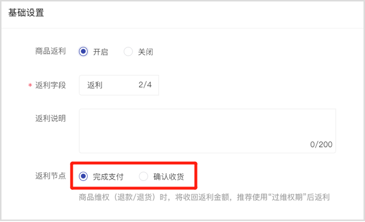 ③支持设置返利节点,自定义完成支付或确认收货后进行返利。