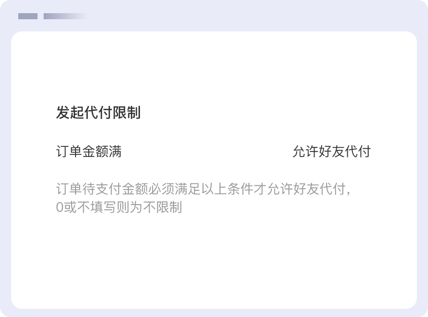 订单待支付金额必须满足设置的条件才允许好友代付。