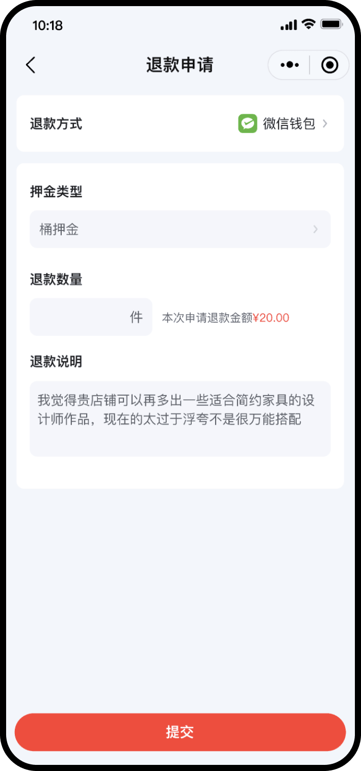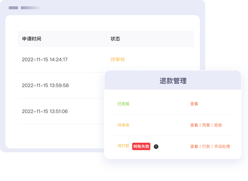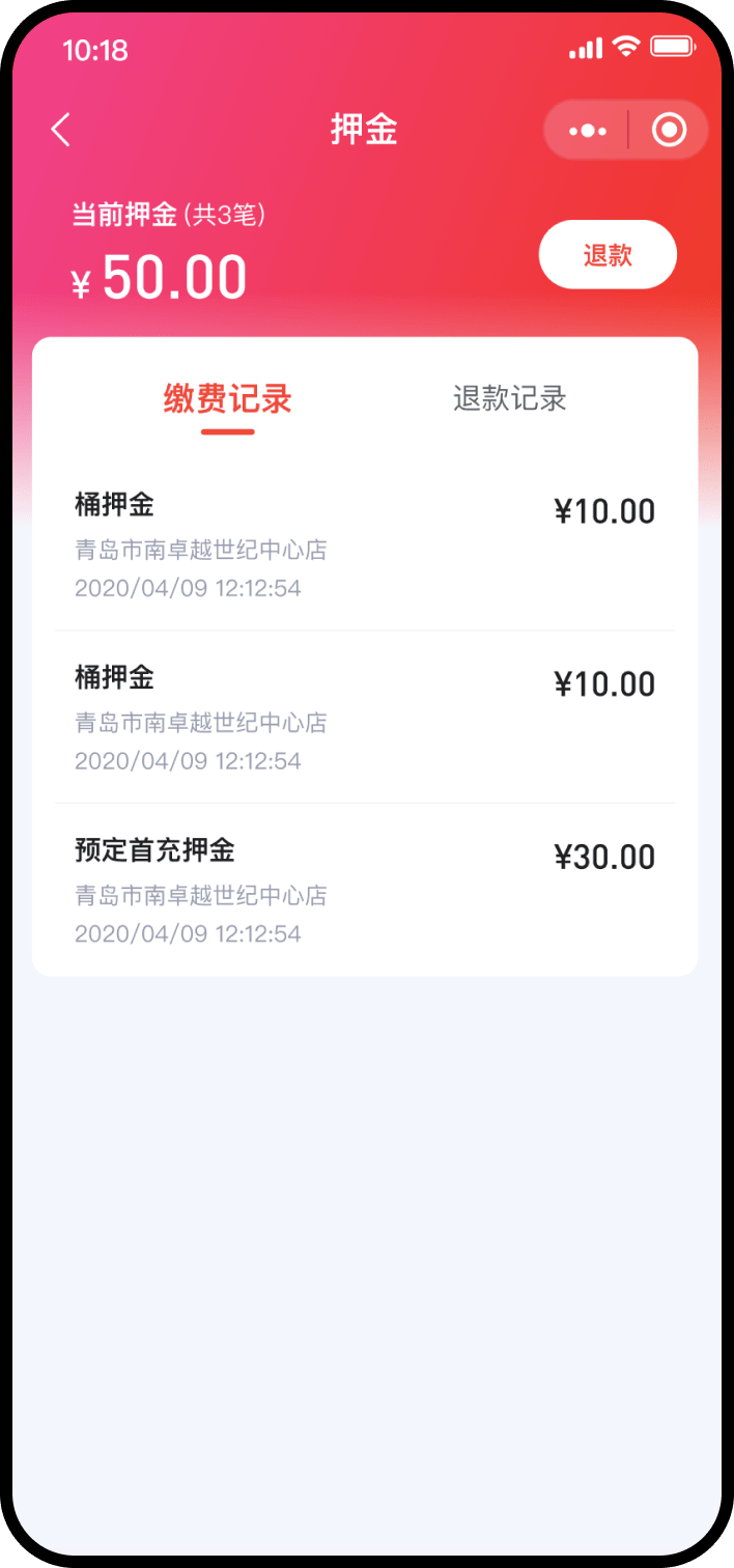 支持在业务端后台手动返还押金,也可以由会员进行申请,审核通过